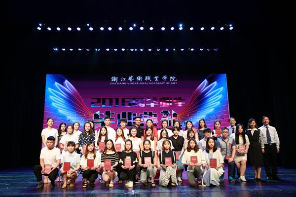 毕业典礼上,还宣布了与毕业生有关的系列荣誉并颁发证书,包括2015-2016学年综合展演季优秀学生、2016届优秀毕业论文、2016届院级优秀毕业生、2016届省级优秀毕业生、国家奖学金获得者名单等,院长黄杭娟、副院长章轲、纪委书记夏开堂分别为毕业生颁奖。黄杭娟为毕业生颁发了毕业证书。