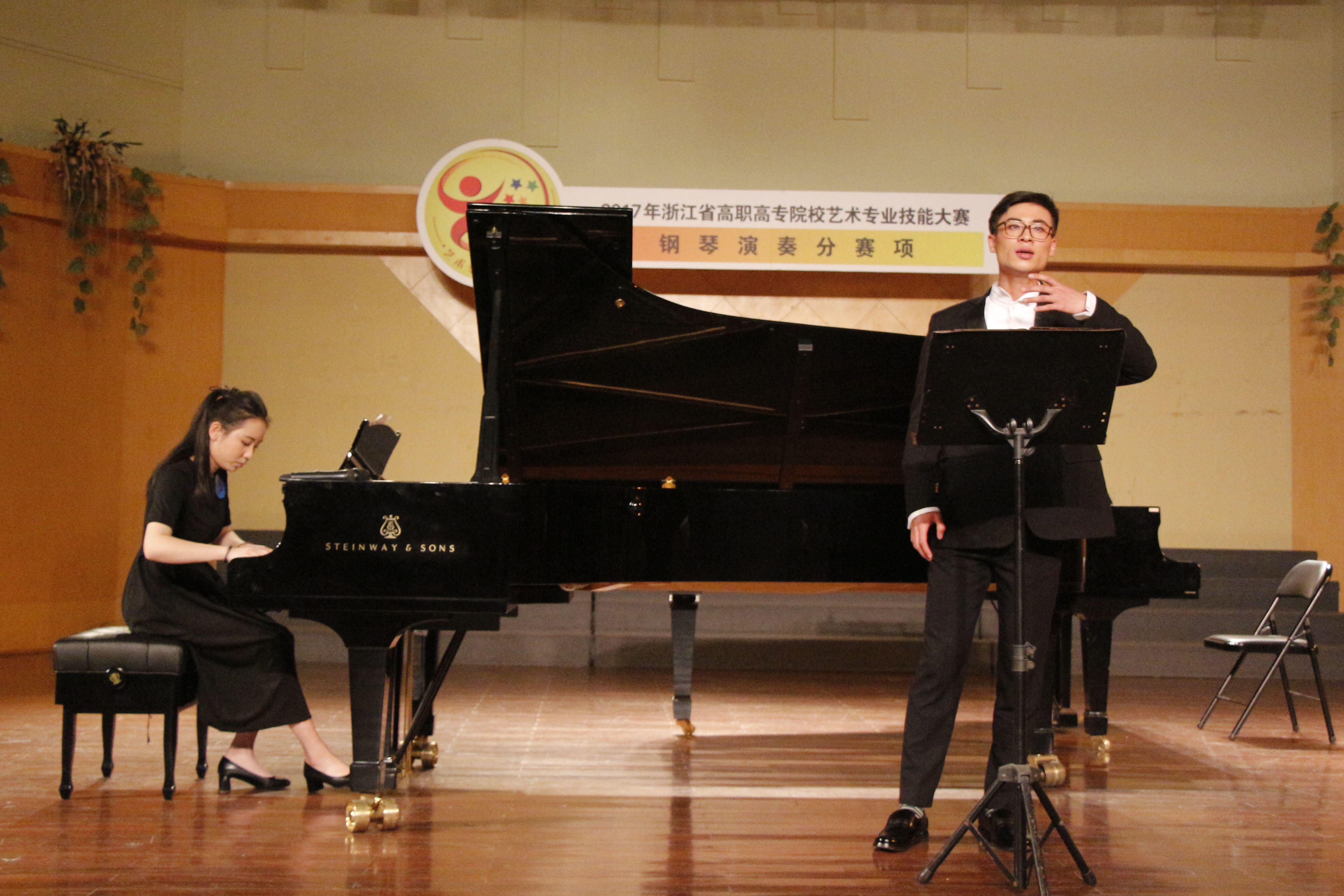 钢琴演奏分赛项同时在学院音乐厅如火如荼地举行,通过比赛,评委将全面考察高等职业院校钢琴演奏学生在技术技巧、曲目演奏、理论应用、拓展创造等方面的综合专业能力和职业素养。比赛分乐曲演奏、听音测试、伴奏编配与排演和伴奏编配答辩四项内容。在技巧比试后,参赛者一个个展示了自己的音乐素养。面对大赛评委的提问,给出了一个又一个令人满意的回答。