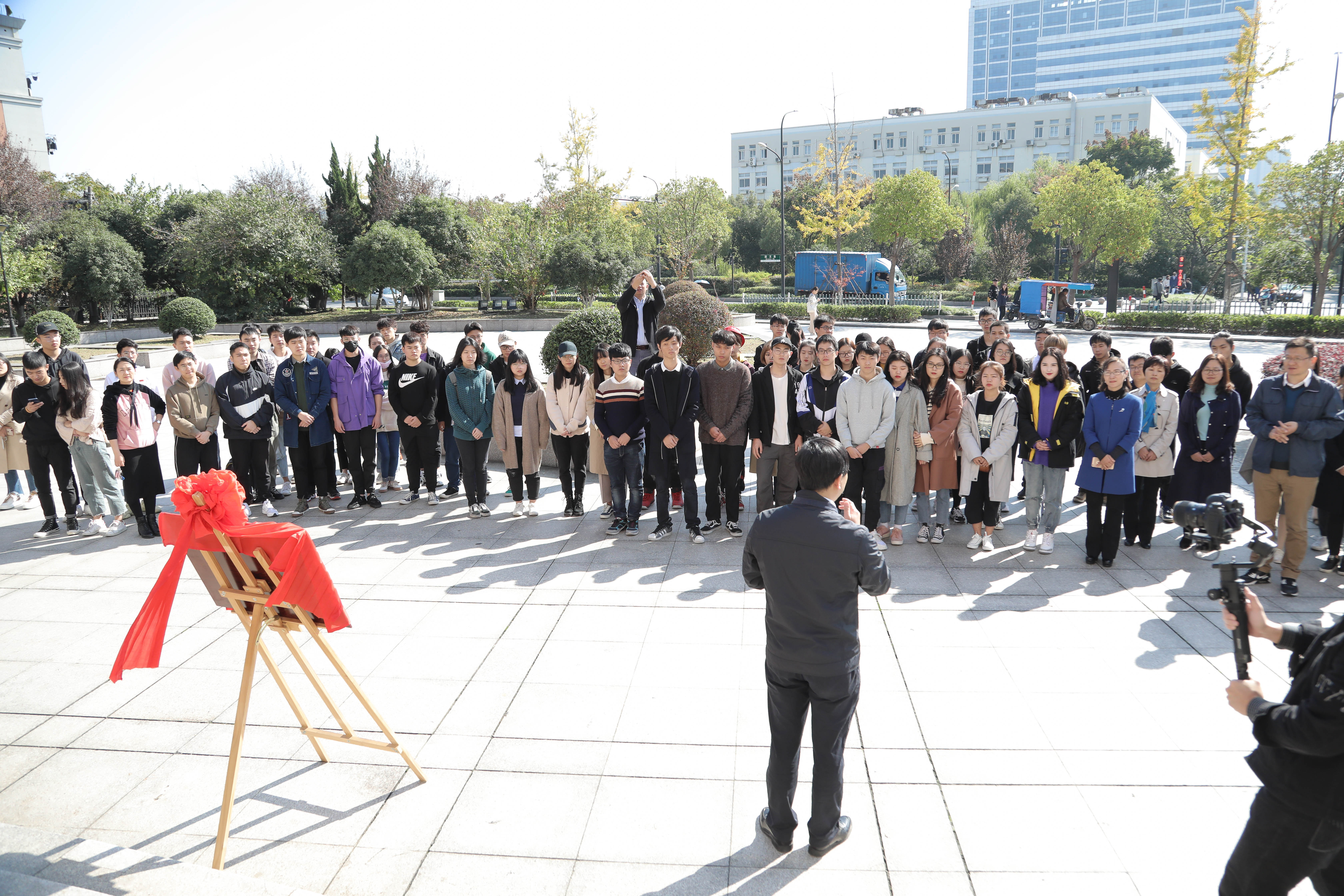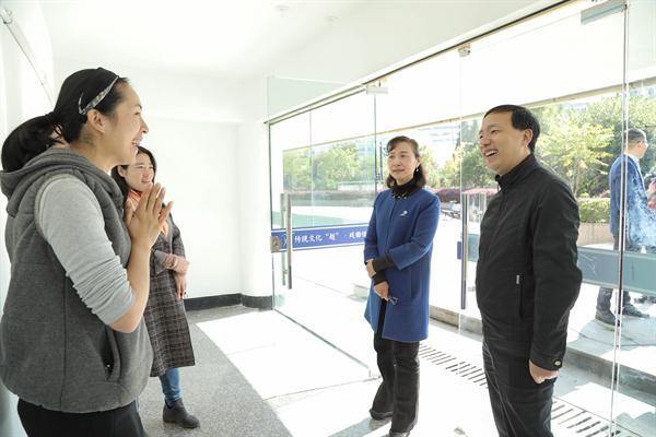 仪式结束后,参与活动的领导、老师们参观了首批入园的“勇敢的心”编剧工作室、未孤工作室、志新影视、聚五部落文化传媒工作室、ONG文创工作室、风艺演艺工作室、传统文化“越”·戏曲体验馆7个创业项目的展陈,并参与项目体验。