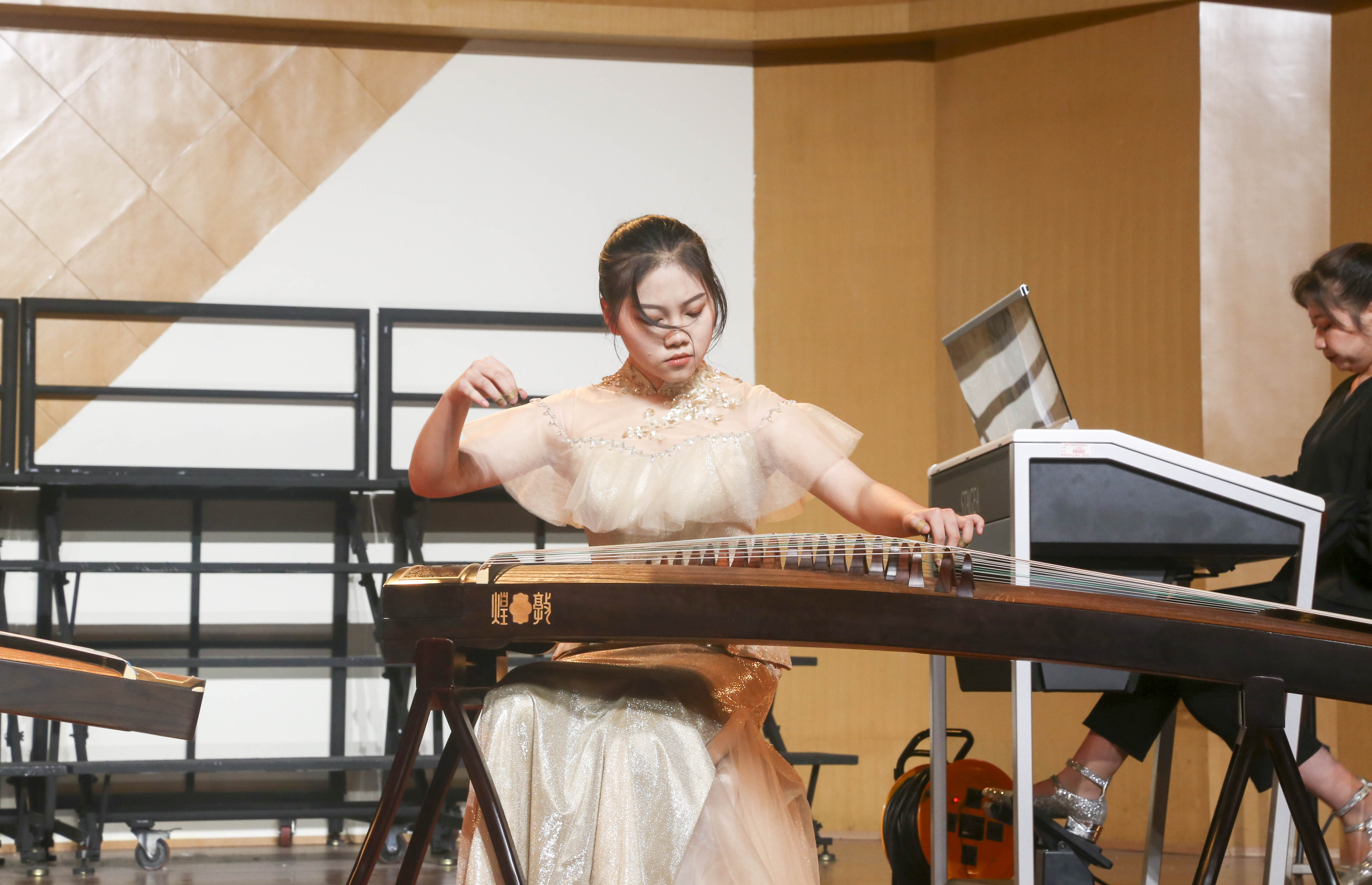 音乐会共上演了8个节目。在新苗丝竹乐队带来的《江南美》欢腾乐声中,音乐会拉开了帷幕。古筝重奏《苍歌引》表演者之一俞嘉睿同学曾在2018年全国职业院校技能大赛弹拨乐器赛项中获中职组一等奖,充满生机的旋律让人感受到演奏者对生命的热爱之情。琵琶独奏《霸王卸甲》充满了悲壮苍劲的独特情感。钢琴独奏《离别》是浪漫主义晚期大师李斯特所作的一首名曲,表演者的演奏水准也是可圈可点。古筝独奏《秦土情》通过不同的演奏技法展现了乐曲的情感变化,跌宕起伏、扣人心弦。小提琴独奏《圣桑 b小调第三号小提琴协奏曲》以优美的旋律深深吸引了观众的听觉神经。二胡独奏《雪山魂塑》展现出热烈的民族音乐之风。音乐会在充满激情的电子管风琴独奏《TiKi TiKiTa》的乐声中画上了圆满句号。