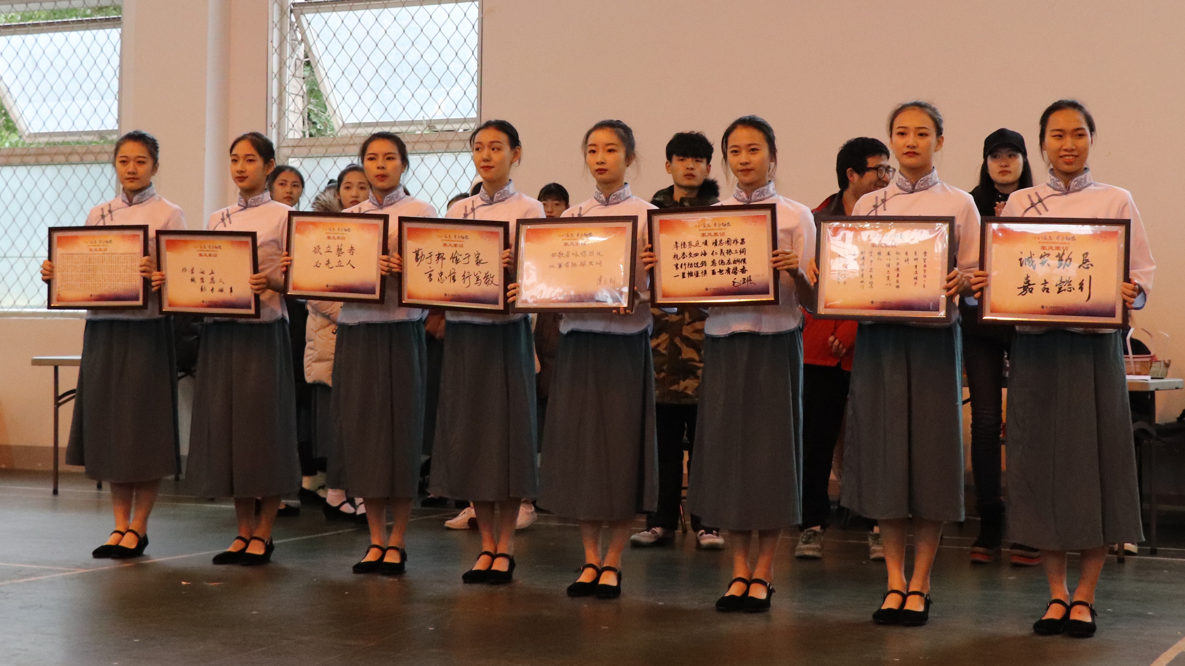 活动分为三个篇章。在第一篇章“感恩·承文脉”中,全体家长为同学们佩戴上成人帽,老师们为同学们颁发《中华人民共和国宪法》,同学们深情拥抱师长,许多家长热泪盈眶。在家风家训传递仪式中,舞蹈系16级舞蹈表演一贯制班李贺鸣同学家长彭丹女士代表全体家长发言,八位家长代表通过现场诵读、传递家风家训的形式寄语孩子的成长。