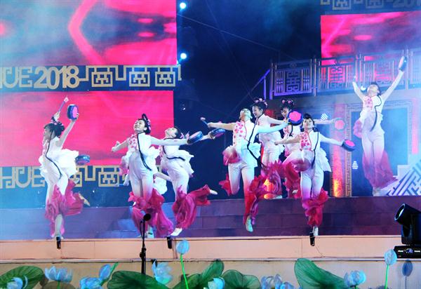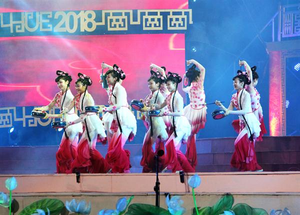 人民网越南顺化4月28日电 (记者 刘刚)当地时间4月27日晚,第十届越南顺化艺术节开幕式晚会在顺化皇宫举行。中国艺术团表演的舞蹈《花鼓声响花开处》惊艳亮相,赢得喝彩。