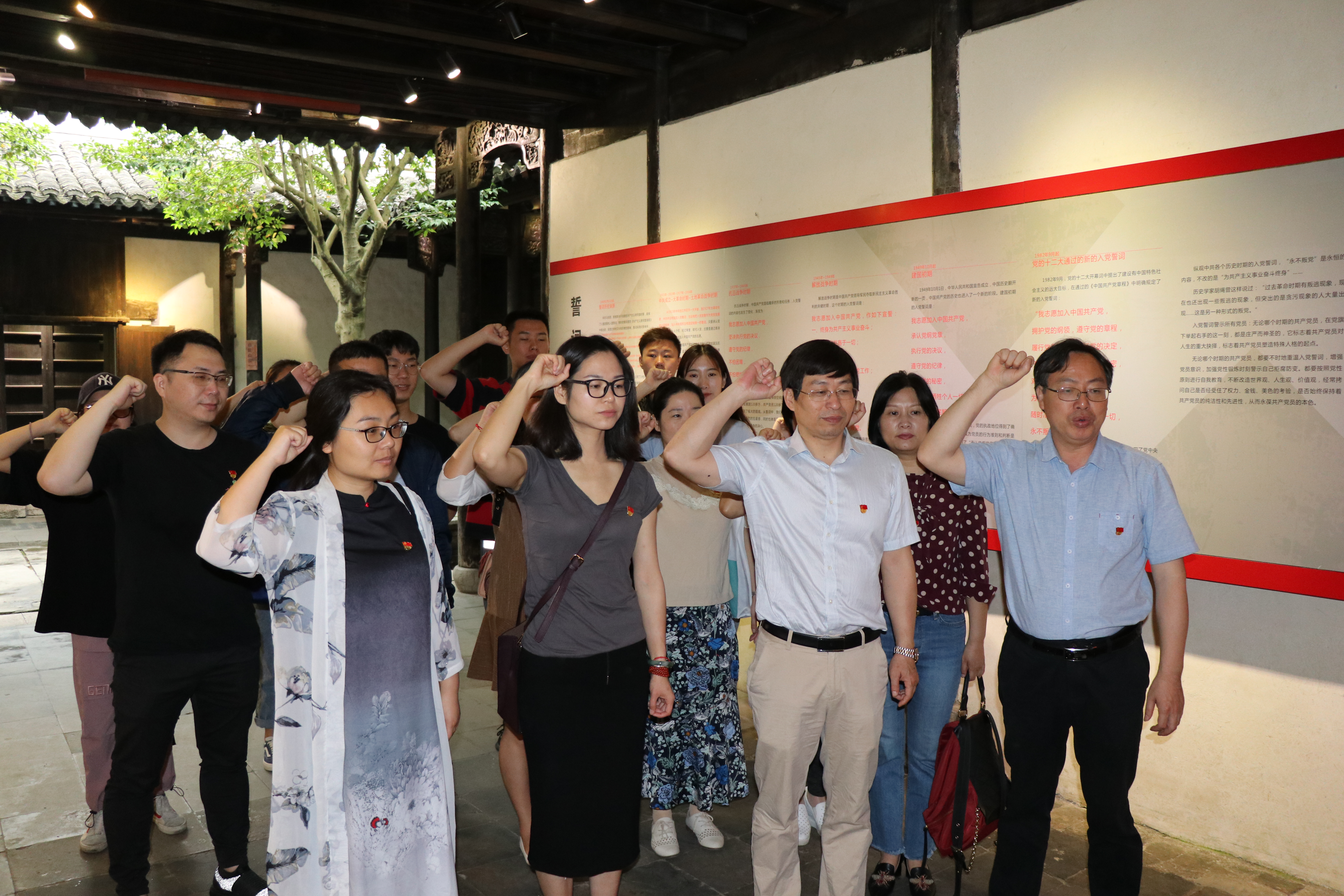在红色之旅的尾声,党员们驻足在鲜红的党旗下,佩戴党徽、举起右手、握紧拳头,在影视技术系党总支书记、副主任彭云波的带领下,重温入党誓词,重温入党初心。在党旗下传承铁军精神,继承党的优良传统,不忘初心,牢记使命!