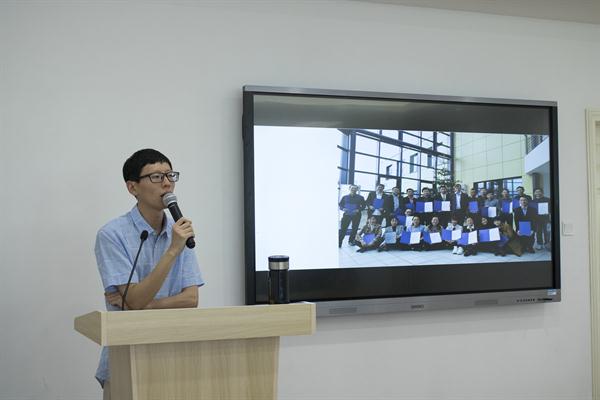 6月14日,我校2018年专业带头人赴德培训分享会在图信中心举行,美术系叶峰泉作《德国“双元制”职业教育体系》分享交流。校党委委员、组织部(统战部)部长、人事处(教师发展中心)处长王涛,各专业带头人、骨干教师及美术系全体教师出席分享会。