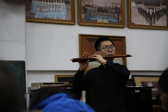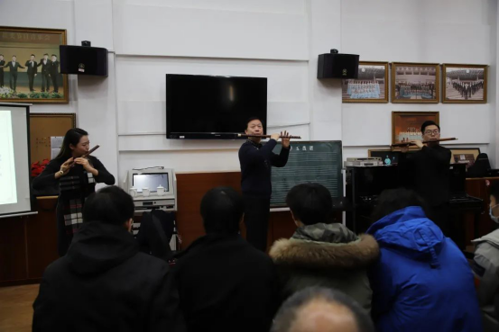 12月22日,由音乐系主办的“第二届学术周系列活动”在3号楼3203教室举行。上海音乐学院竹笛教授詹永明和浙艺2012届杨梦璐、2016届王泽两位校友为浙艺竹笛专业的学生们上了一堂理论与实践并重的生动一课。音乐系党总支书记、主任吴樟华、浙江省“松庭”笛萧公益艺术中心理事长王建元、浙江歌舞剧院民乐团管乐声部长朱炜、浙江音乐学院竹笛专业教师赵琦出席,我校竹笛教师及全体竹笛专业学生参加。