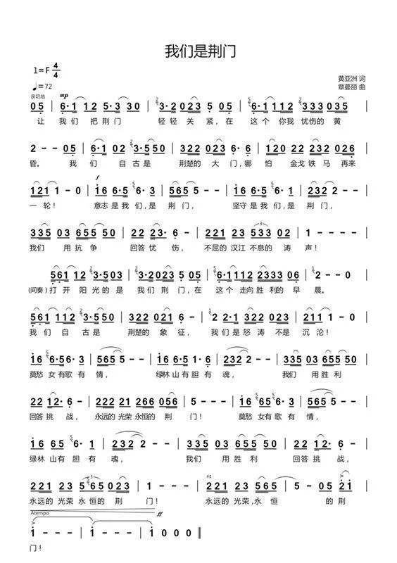 “我们自古是荆楚的象征,莫愁女有歌有情,绿林山有胆有魂,我们用胜利回答挑战,永远的光荣,永恒的荆门。”伴随着湖北疫情突发、浙江医疗队紧急支援荆门的新闻画面,一首女声独唱《我们是荆门》温柔中蕴含坚强力量,唱出了浙江和荆门携手抗击疫情的深厚情谊和坚定信心。