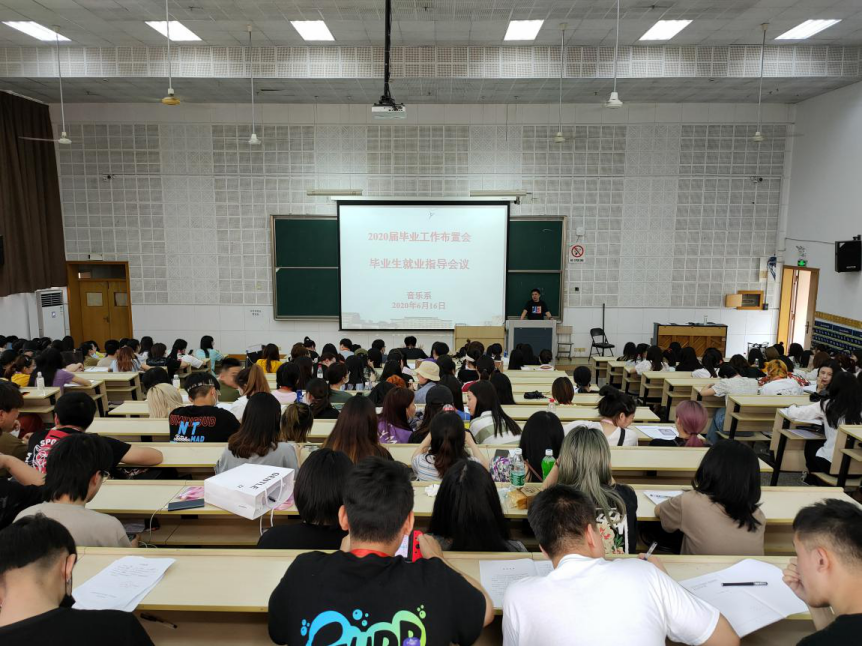 为进一步提升音乐系2020届毕业生的就业意识与技能,引导学生正确认识今年的就业形势,及时调整就业观念,抓住机遇,实现尽早就业,2020年6月16日上午,音乐系在学校阶梯二教室举行2020届毕业生就业指导讲座。音乐系党总支常务专职副书记谢志勇,毕业生辅导员、毕业生班主任和262名应届毕业生参加。