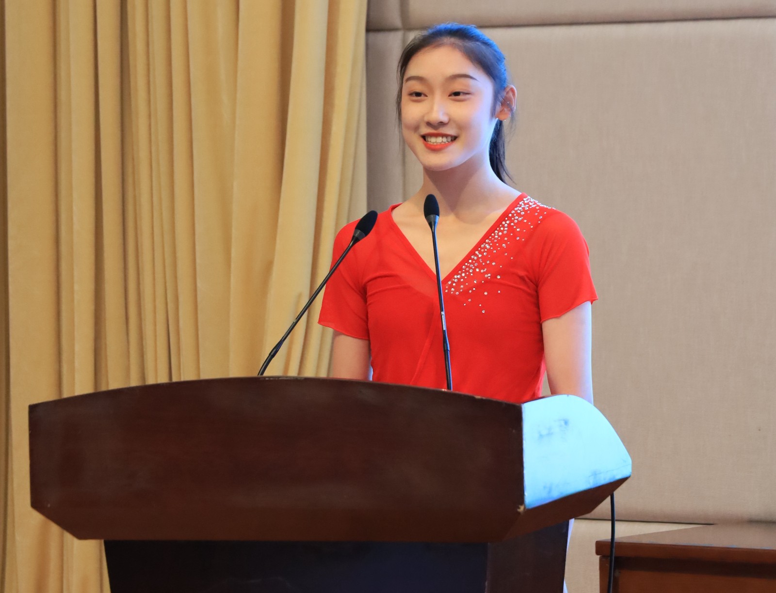 夏开堂现场宣布获得2020-2021学年国家奖学金推荐人员名单,分别是文化管理系楼柳婧、戏曲学院黄霜霜、音乐系王佳璐。