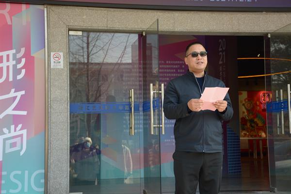 ▲美术系专职副书记顾才铭致开幕词