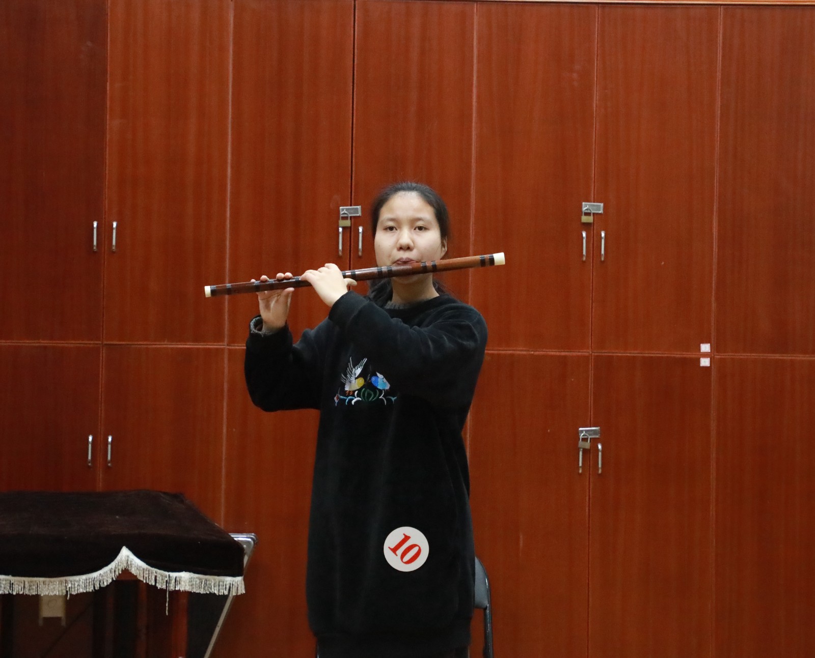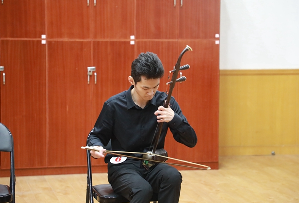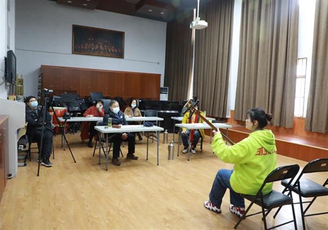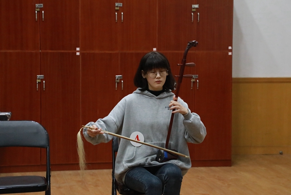 考生的演奏乐器涵盖了竹笛、主胡、二胡、扬琴、琵琶、阮、古筝、戏曲打击乐器等,考生们现场演奏了《秦土情》《枫桥夜泊》《郁轮袍》等曲目。从小学就开始学习古筝的杨同学现场演奏了《箜篌引》,她说:“从小学一年级就开始学习古筝,也很热爱越剧,对于这次考试充满了信心。”