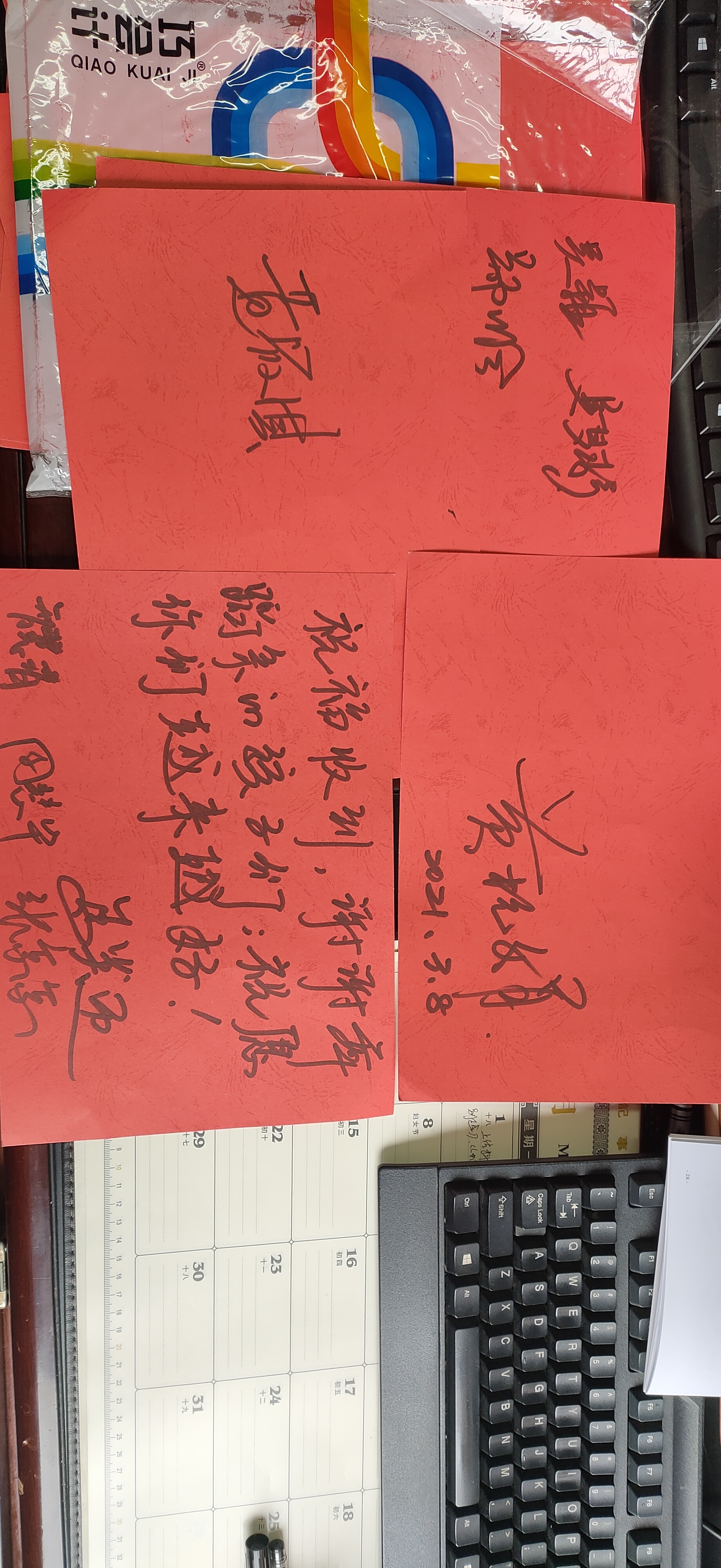 38日清晨,同学们将一朵朵五颜六色的花束献给平日里辛勤浇灌艺术之花的老师们,这是一种爱的回馈。老师们接过“鲜花”,露出开心的笑容,她们在签名簿上签字,留下了温暖的印记。