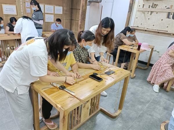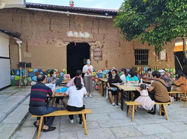 乡村振兴,浙艺在行动。文化管理系自与衢州市柯城区签订战略合作协议以来,暑期开展了一系列社会实践活动和调研,结合余东村"中国农民画之乡"的特点,确立了以农民画为元素的非遗研学课程开发和直播、文化类志愿活动为主要内容的服务思路。暑期通过师生团队反复调研与思考,设计开发了十门余东未来乡村非遗研学课程。8月25日首开《农民画水印木刻版画》课程培训,反响热烈,受到当地群众的称赞。通过培训农民讲师,将非遗课程植入农户,赋能余东农民画迭代升级,开发文旅文创项目,助力农民致富的模式得到了当地政府和农户的高度肯定。应当地要求,9月16日,文化管理系师生赴衢州余东村,再次开展服务。