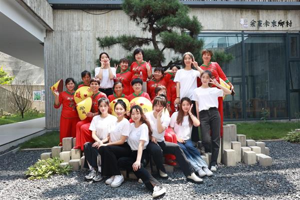 文化管理系与衢州市柯城区“双百双进”社会实践活动校地结对,学生通过社会实践,将学习成效转化为服务人民、奉献乡村的实际行动,结合当地农民画特色文化,通过非遗研学课程开发,文旅融合设计、活态体验教学、线上直播带货等多种形式助力未来乡村建设。
