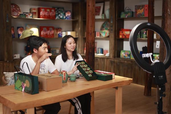 舞蹈队和直播带货队的师生同样在行动。文化管理系舞蹈队学生与当地妇女舞蹈队相互教学,交流分享,体验民间舞与现代舞的结合,感受传统与现代的碰撞。直播带货队师生延续暑期直播带货助农模式,继德门龙面和“南孔文创”后为余东村线上宣传当地特色产品金钱眉茶叶,直播获得2万余次点赞流量,浏览量持续攀升,带领村民走上“互联网+”的致富路。