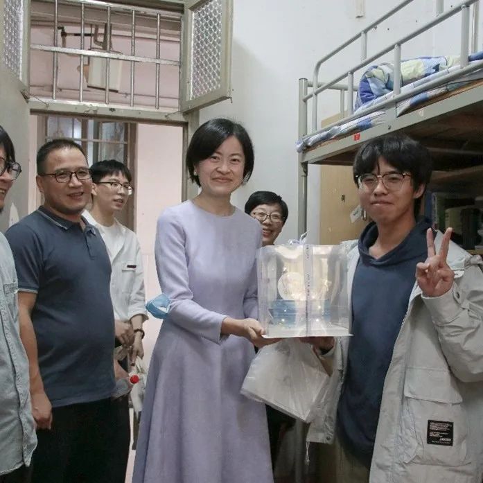 设计学院领导班子来到新生寝室,走访慰问新生入住情况,耐心解答同学们的疑问,鼓励同学们尽快适应校园生活,并为报到当天生日的新生送上了精心准备的生日礼物和蛋糕。