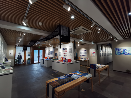 我们依托古“缬”新“韵”之意,秉承“致意传统,创意再生,享匠品生活”之理念,让大家感受古韵与今韵的碰撞,传承与创新的并行,让身处现代展览中感受创新带来的时尚,也不忘追忆历史长河中非遗夹缬留下的古韵。非遗蓝夹缬技艺传承人叶其丹表示。