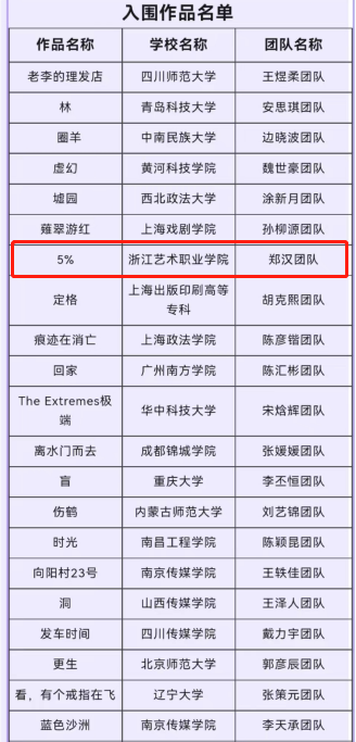 喜报 | 浙艺戏剧影视学院学生毕业设计作品《5%》,喜获“双奖”!